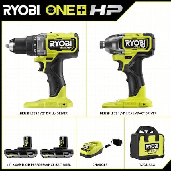 ONE+ HP 18V Brushless Cordless 2-Tool Combo Kit with (2) 2.0 Ah Batteries, Charger, and Bag