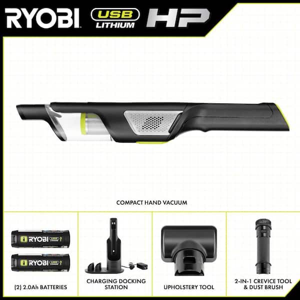 USB Lithium HP Compact Hand Vacuum Cleaner Kit with (2) USB Lithium 2.0 Ah Batteries and Charger