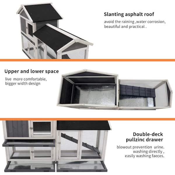 Rabbit Hutch Bunny Cage Outdoor Rabbit Cages with Run Pet House Deeper No Leak Tray UV Panel Removable Bottom Wire Mesh