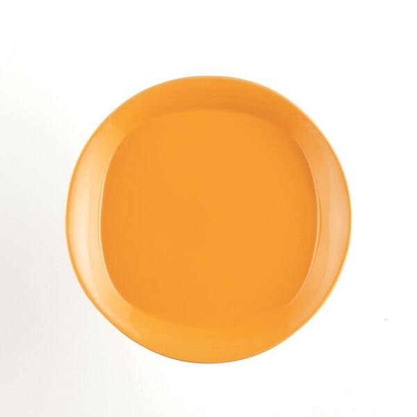 • Stoneware salad plates in vibrant orange are perfect for any meal