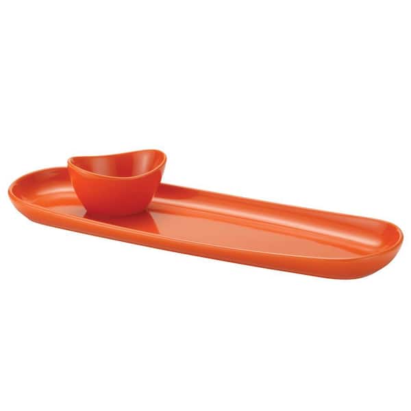 Stoneware Baguette Tray with Dipping Cup in Orange