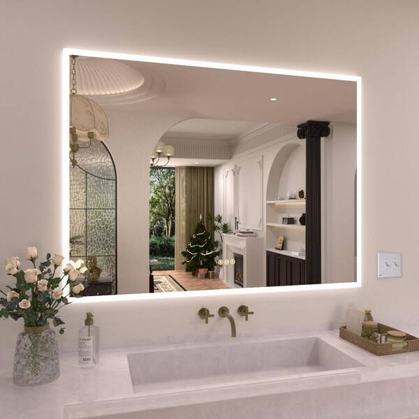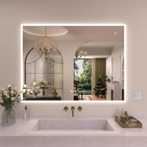 Radiance 48 in. W x 36 in. H Rectangular Frameless LED Wall Bathroom Vanity Mirror with Polished Crystal Finish