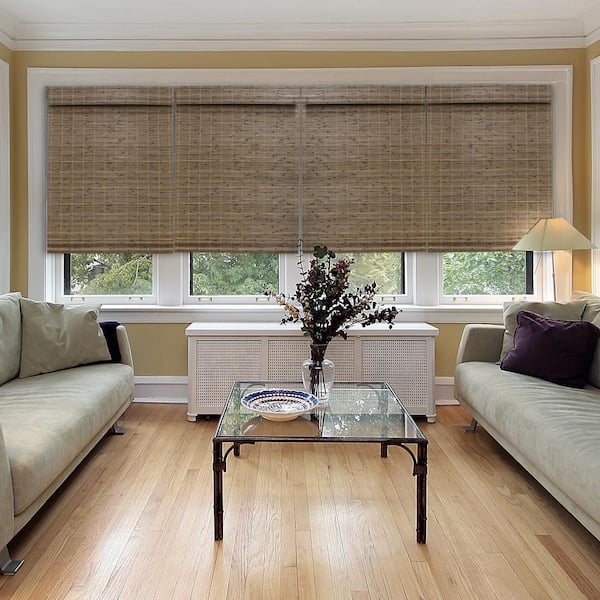Farmhouse Cut-to-Size Driftwood Cordless Light-Filtering Textured Bamboo Shades 41 in. W x 64 in. L