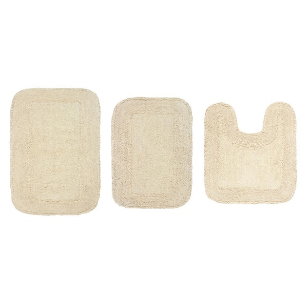 Radiant Collection 100% Cotton Bath Rugs Set, 3-Pcs Set with Contour, Ivory