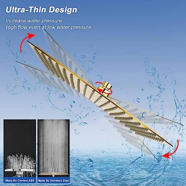 Rain Shower head 3-Spray Patterns with 2.5 GPM 16 in. Wall Mount Rain Fixed Shower Head in ‎Chrome Gold.