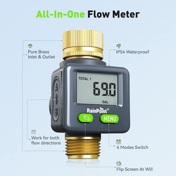• Dual total modes track multiple water usage periods at once