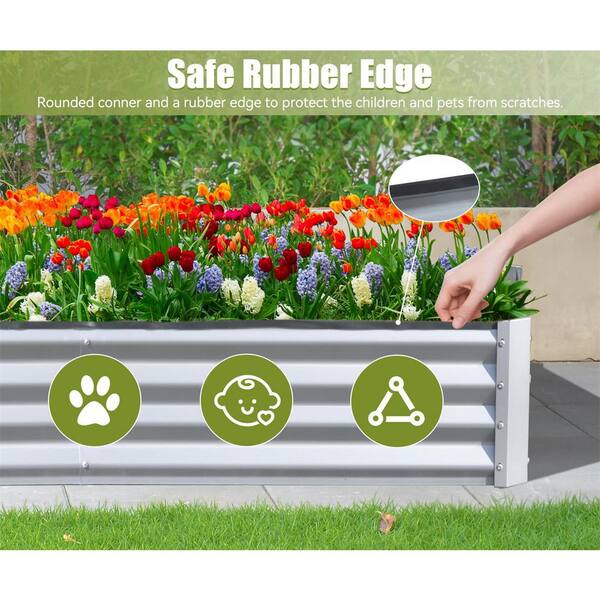Raised Bed Planter, 8 ft. x 4 ft. x 1 ft. Galvanized Steel Raised Garden Bed, Silver