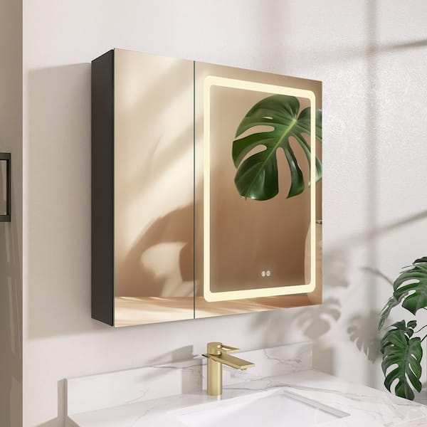 Ralix 30 in. W x 30 in. H Defogging Rectangular Black Aluminum Surface Mount Bathroom Medicine Cabinet with Mirror