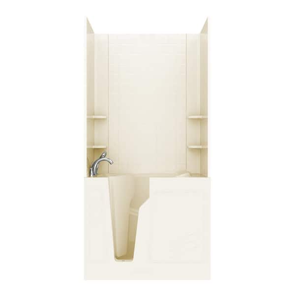 Rampart 3.9 ft. Walk-in Non-Whirlpool Bathtub with 4 in. Tile Easy Up Adhesive Wall Surround in Biscuit
