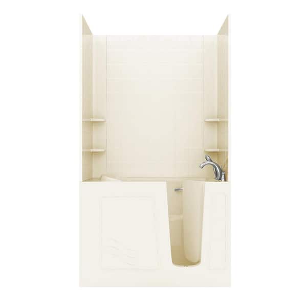 Rampart Nova Heated 4.5 ft. Walk-in Non-Whirlpool Bathtub in Biscuit with 6 in. Tile Wall Surround