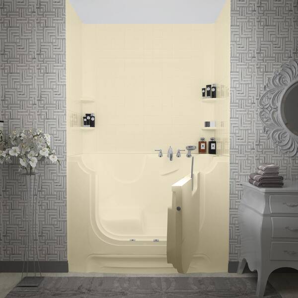 Rampart Wheelchair Accessible 5 ft. walk-in bathtub with 4 in. Tile Easy Up Adhesive Wall Surround in Biscuit