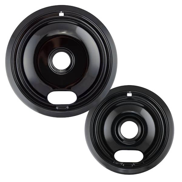 6 in. Small and 8 in. Large A Style Drip Pan in Black Porcelain (2-Pack)
