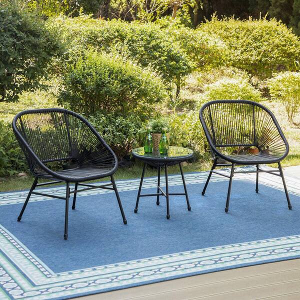 Rattan 3-Piece Metal Outdoor Dining Set with Tempered Glass Table and Wicker Chairs
