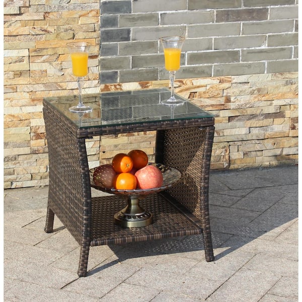 Ratten Steel Outdoor Brown Patio Furniture 1 Coffee Table with Clear Tempered Glass, Water Resistant and UV Resistant