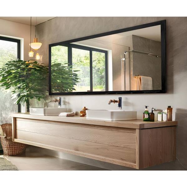 2 in Black Frame (30 in. W x 57 in. H) Oak Hardwood Rectangle Wall Mirror