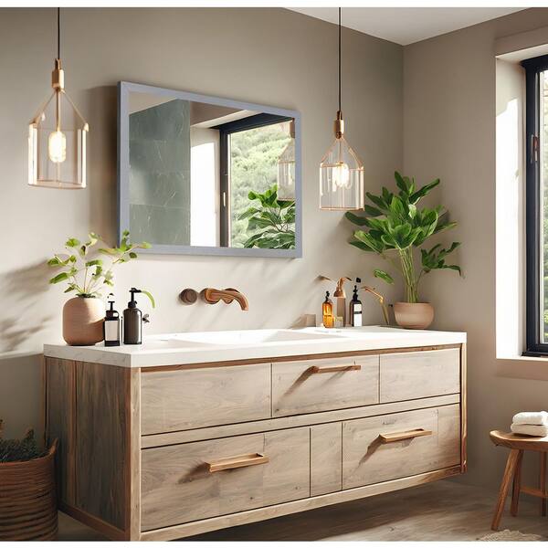 2 in Grey Frame (30 in. W x 27 in. H) Oak Hardwood Rectangle Wall Mirror