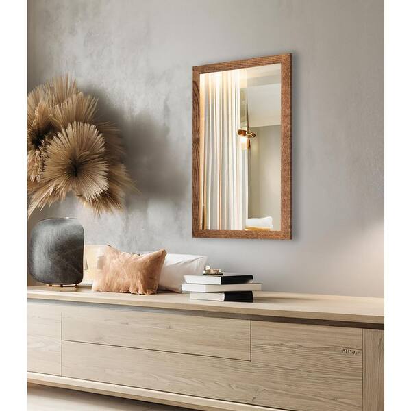 2 in Honey Frame (30 in. W x 17 in. H) Oak Hardwood Rectangle Wall Mirror