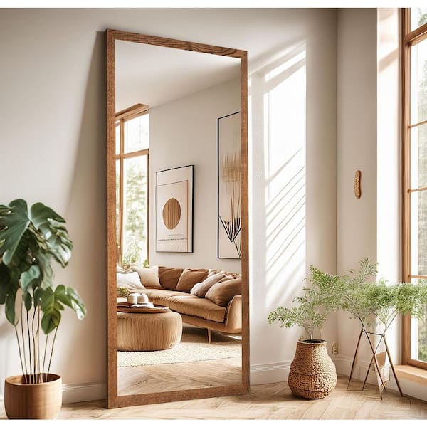 2 in Honey Frame (30 in. W x 67 in. H) Oak Hardwood Rectangle Wall Mirror