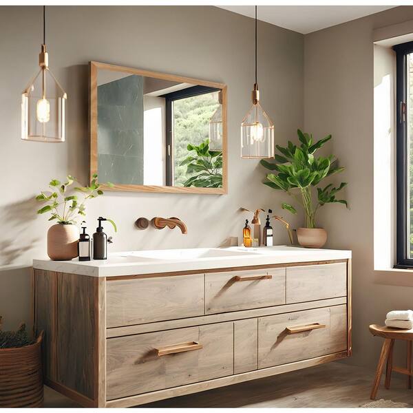 2 in. Natural Frame (30 in. W x 29 in. H) Oak Hardwood Rectangle Wall Mirror