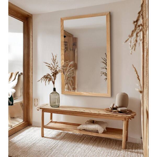 2 in. Natural Frame (30 in. W x 49 in. H) Oak Hardwood Rectangle Wall Mirror