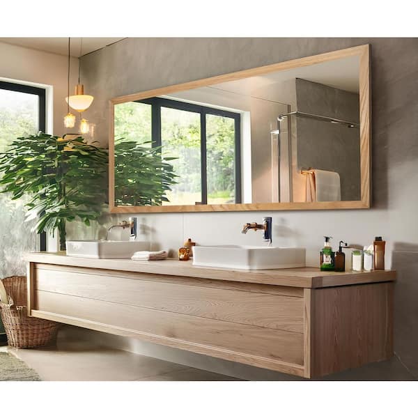 2 in. Natural Frame (30 in. W x 55 in. H) Oak Hardwood Rectangle Wall Mirror