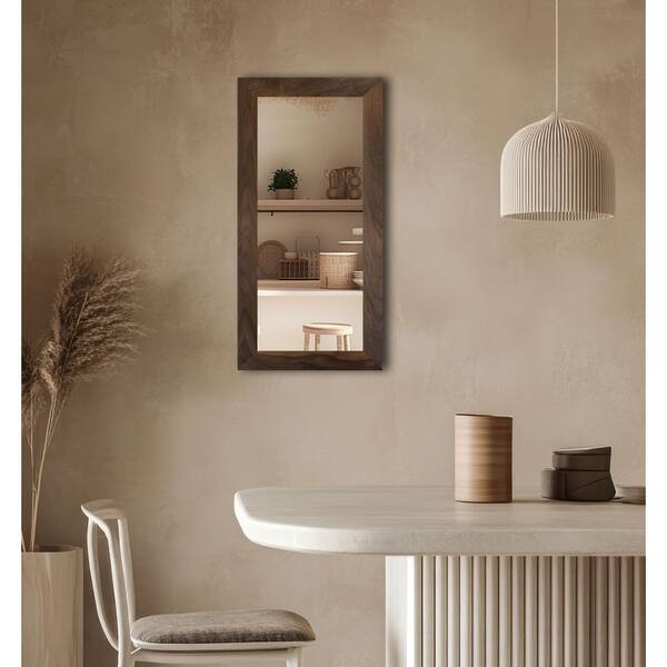 2 in Walnut Frame (30 in. W x 15 in. H) Walnut Hardwood Rectangle Wall Mirror