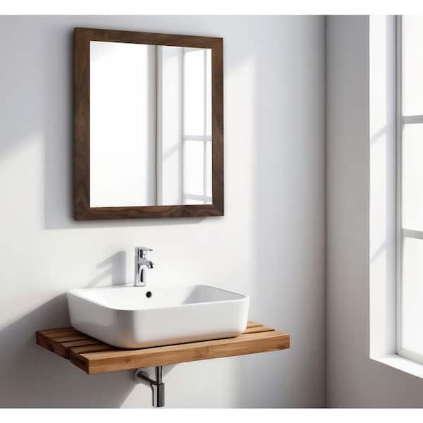 2 in Walnut Frame (30 in. W x 25 in. H) Walnut Hardwood Rectangle Wall Mirror