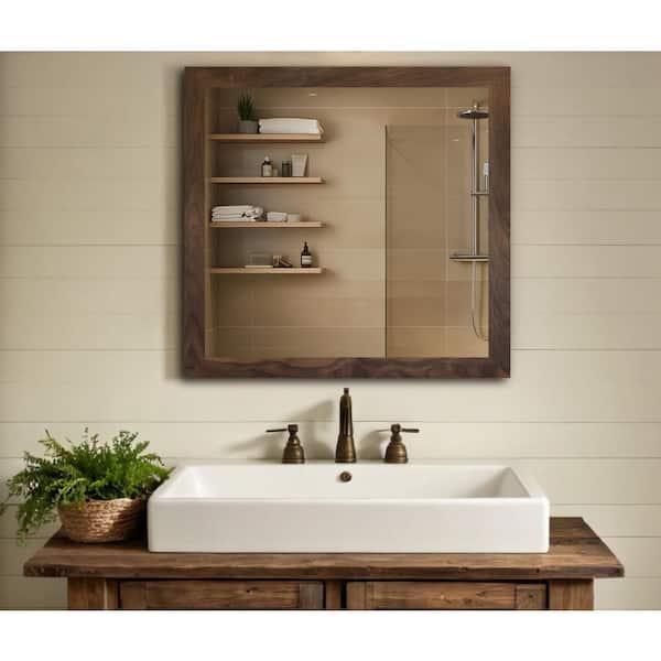 2 in Walnut Frame (30 in. W x 41 in. H) Walnut Hardwood Rectangle Wall Mirror