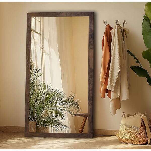 2 in Walnut Frame (30 in. W x 59 in. H) Walnut Hardwood Rectangle Wall Mirror