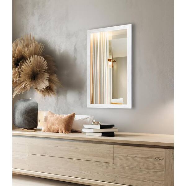 2 in White Frame (30 in. W x 19 in. H) Oak Hardwood Rectangle Wall Mirror