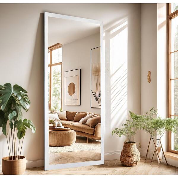 2 in White Frame (30 in. W x 69 in. H) Oak Hardwood Rectangle Wall Mirror