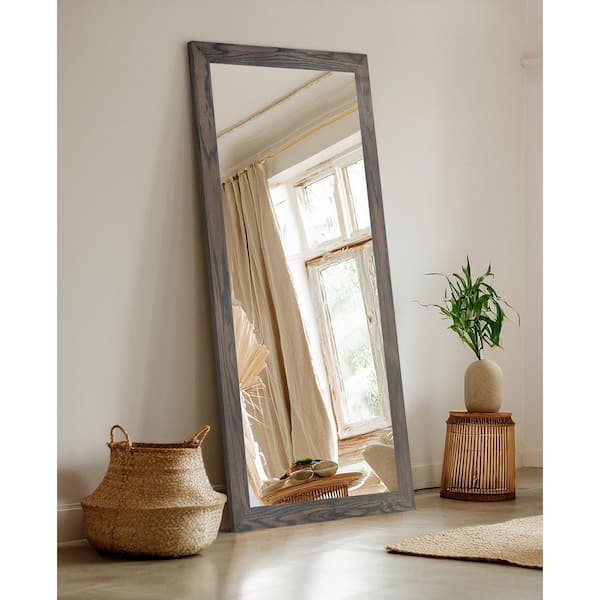 3 in Carbon Grey Frame (72 in. W x 33 in. H) Oak Hardwood Rectangle Wall Mirror