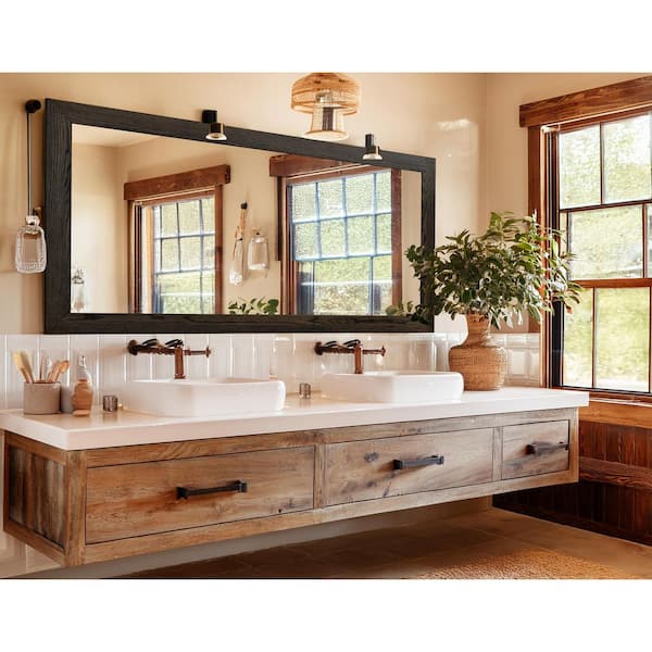 3 in Ebony Frame (66 in. W x 33 in. H) Oak Hardwood Rectangle Wall Mirror