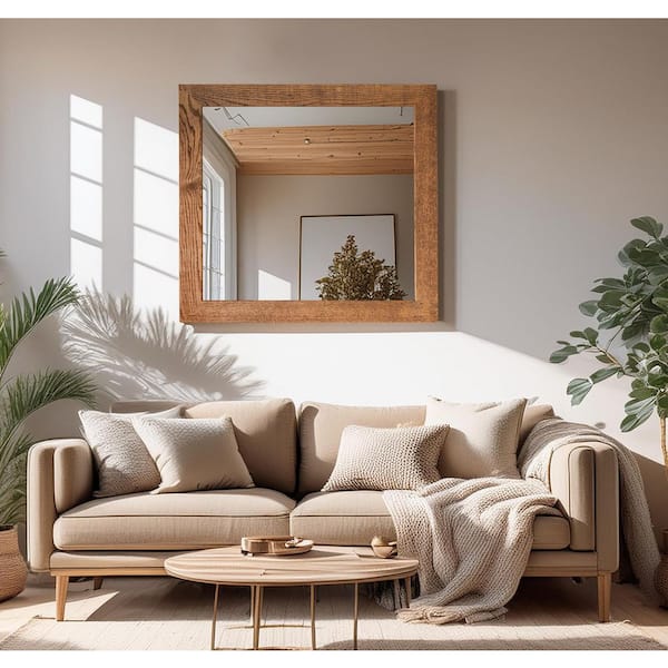 3 in Honey Frame (30 in. W x 33 in. H) Oak Hardwood Rectangle Wall Mirror