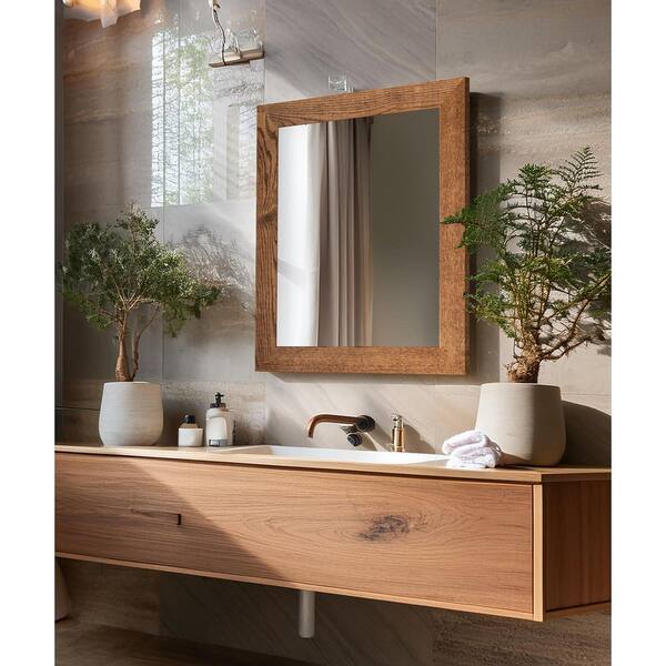 3 in Honey Frame (42 in. W x 33 in. H) Oak Hardwood Rectangle Wall Mirror