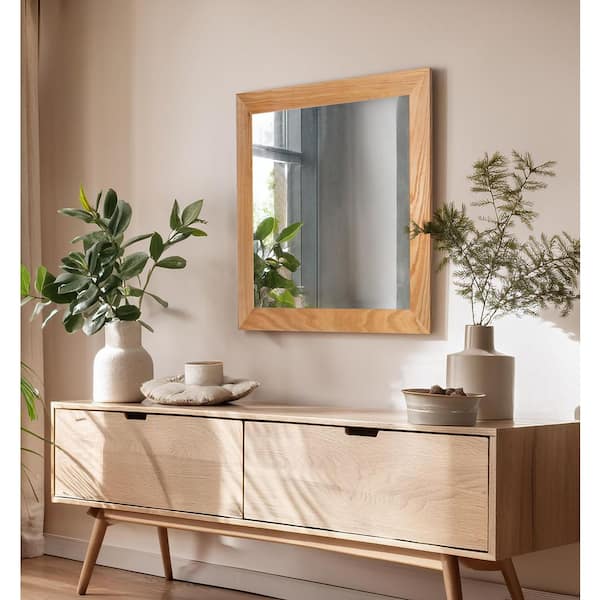 3 in Natural Frame (32 in. W x 33 in. H) Oak Hardwood Rectangle Wall Mirror