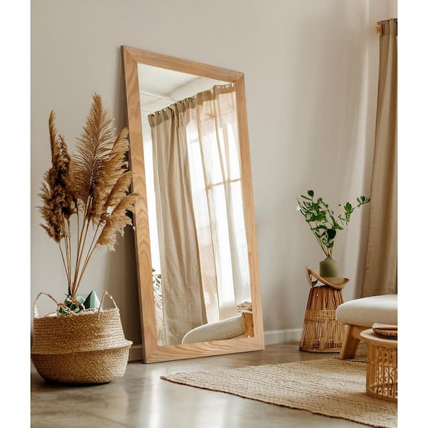 3 in Natural Frame (68 in. W x 33 in. H) Oak Hardwood Rectangle Wall Mirror