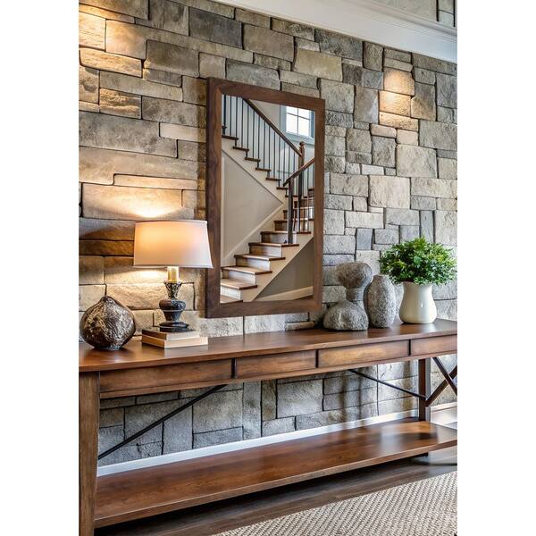 3 in. Walnut Frame (52 in. W x 33 in. H) Walnut Hardwood Rectangle Wall Mirror