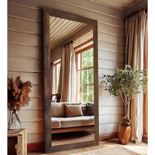 3 in. Walnut Frame (78 in. W x 33 in. H) Walnut Hardwood Rectangle Wall Mirror