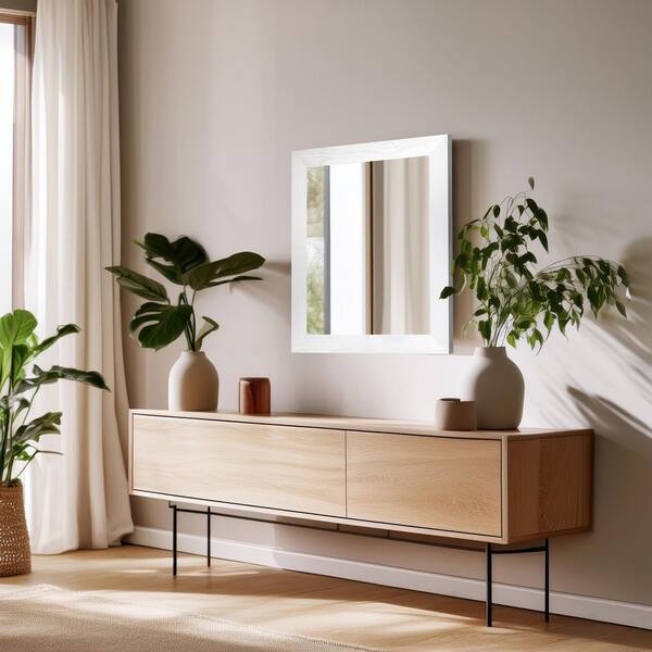 3 in. White Frame (32 in. W x 33 in. H) Oak Hardwood Rectangle Wall Mirror