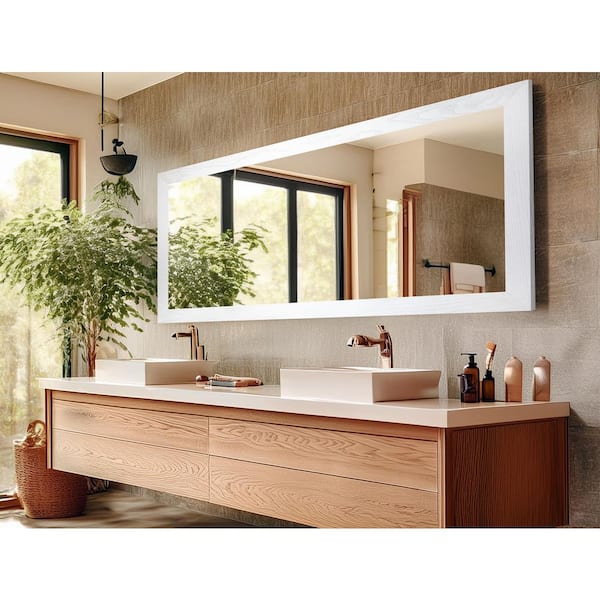 3 in. White Frame (58 in. W x 33 in. H) Oak Hardwood Rectangle Wall Mirror