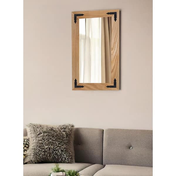 (33 in. W x 20 in. H) Natural Hardwood Rectangle Mirror with Decorative Corner Bracket