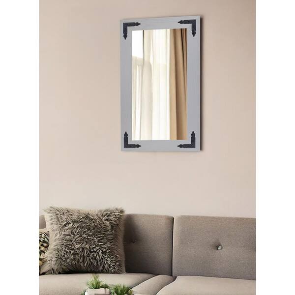 (33 in. W x 22 in. H) Grey Hardwood Rectangle Mirror with Decorative Corner Bracket