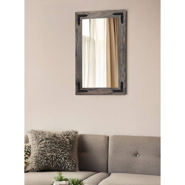 (33 in. W x 24 in. H) Carbon Grey Hardwood Rectangle Mirror with Decorative Corner Bracket