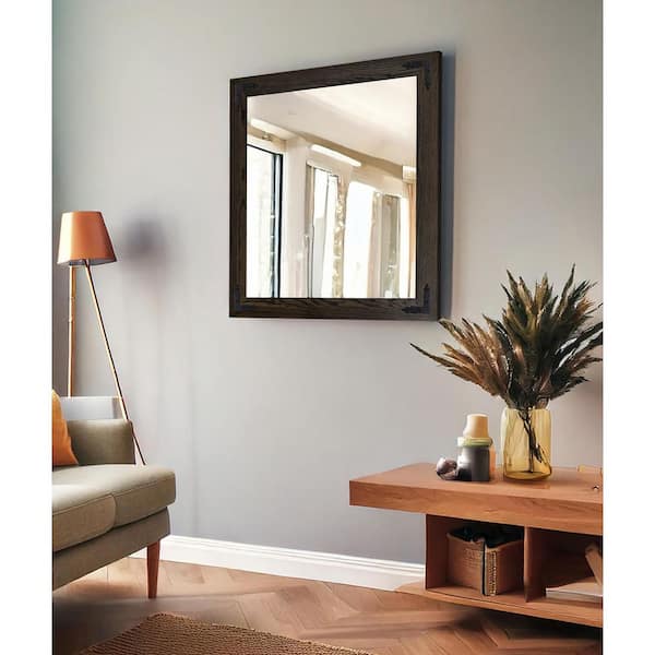 (33 in. W x 30 in. H) Ebony Hardwood Rectangle Mirror with Decorative Corner Bracket