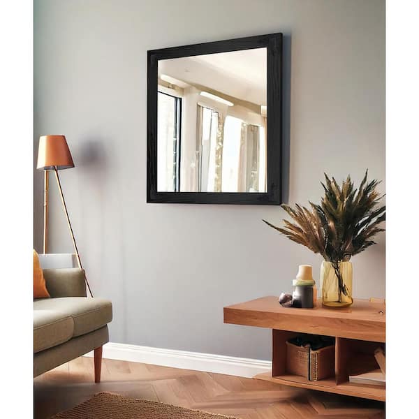 (33 in. W x 36 in. H) Black Hardwood Rectangle Mirror with Decorative Corner Bracket