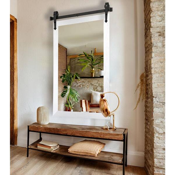 (33 in. W x 58 in. H) White Oak Hardwood Mirror With Steel Barndoor Rail