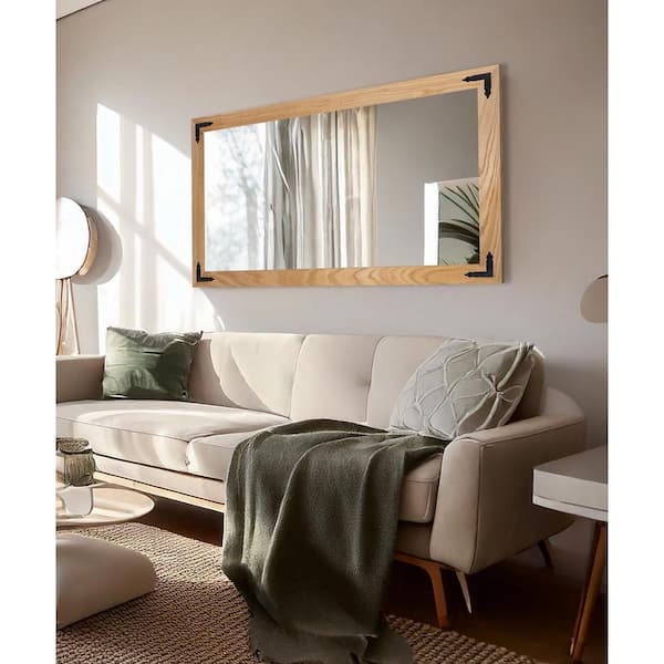 (33 in. W x 60 in. H) Natural Hardwood Rectangle Mirror with Decorative Corner Bracket