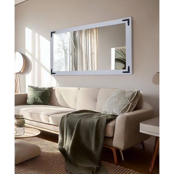 (33 in. W x 62 in. H) Grey Hardwood Rectangle Mirror with Decorative Corner Bracket