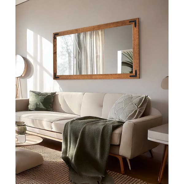 (33 in. W x 62 in. H) Honey Hardwood Rectangle Mirror with Decorative Corner Bracket